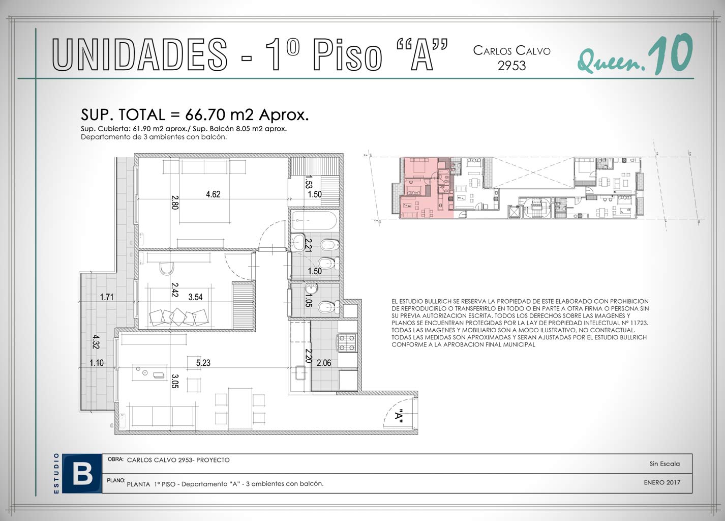 Unidades 1° Piso - 3 Ambientes con Balcón (Depto. "A")