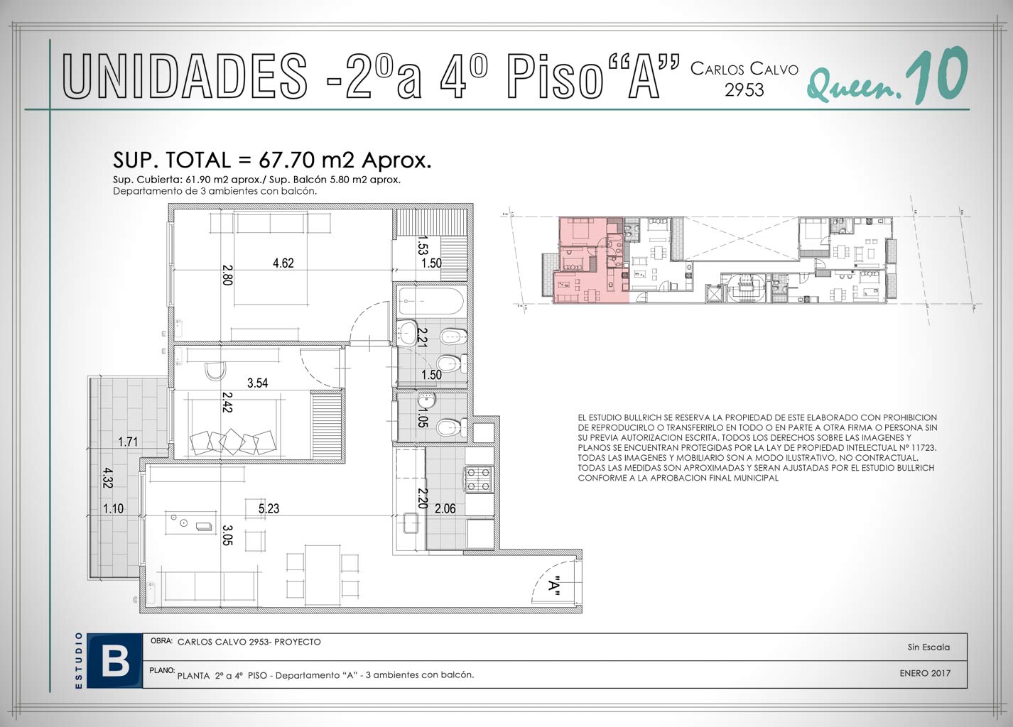 Unidades 2° a 4° Piso - 3 Ambientes con Balcón (Depto. "A")