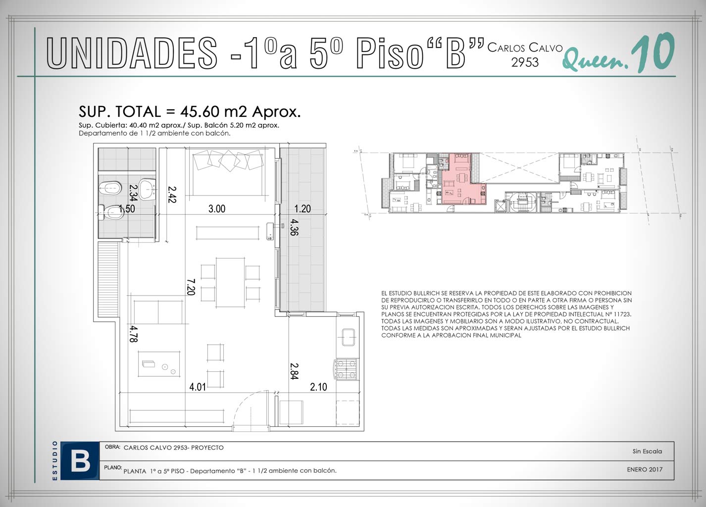 Unidades 1° a 5° Piso - 1 1/2 Ambientes con Balcón (Depto. "B")