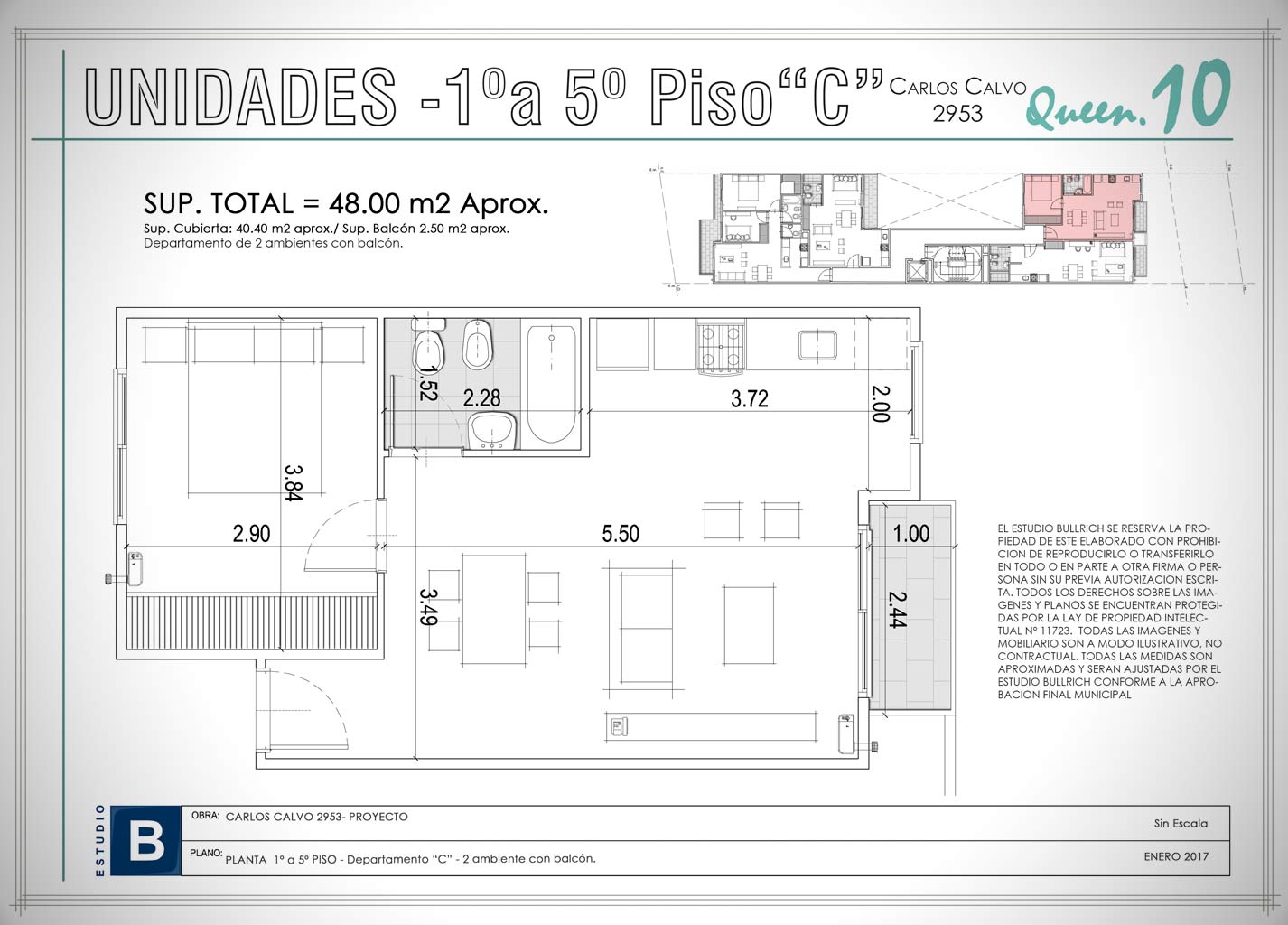 Unidades 1° a 5° Piso - 2 Ambientes con Balcón (Depto. "C")