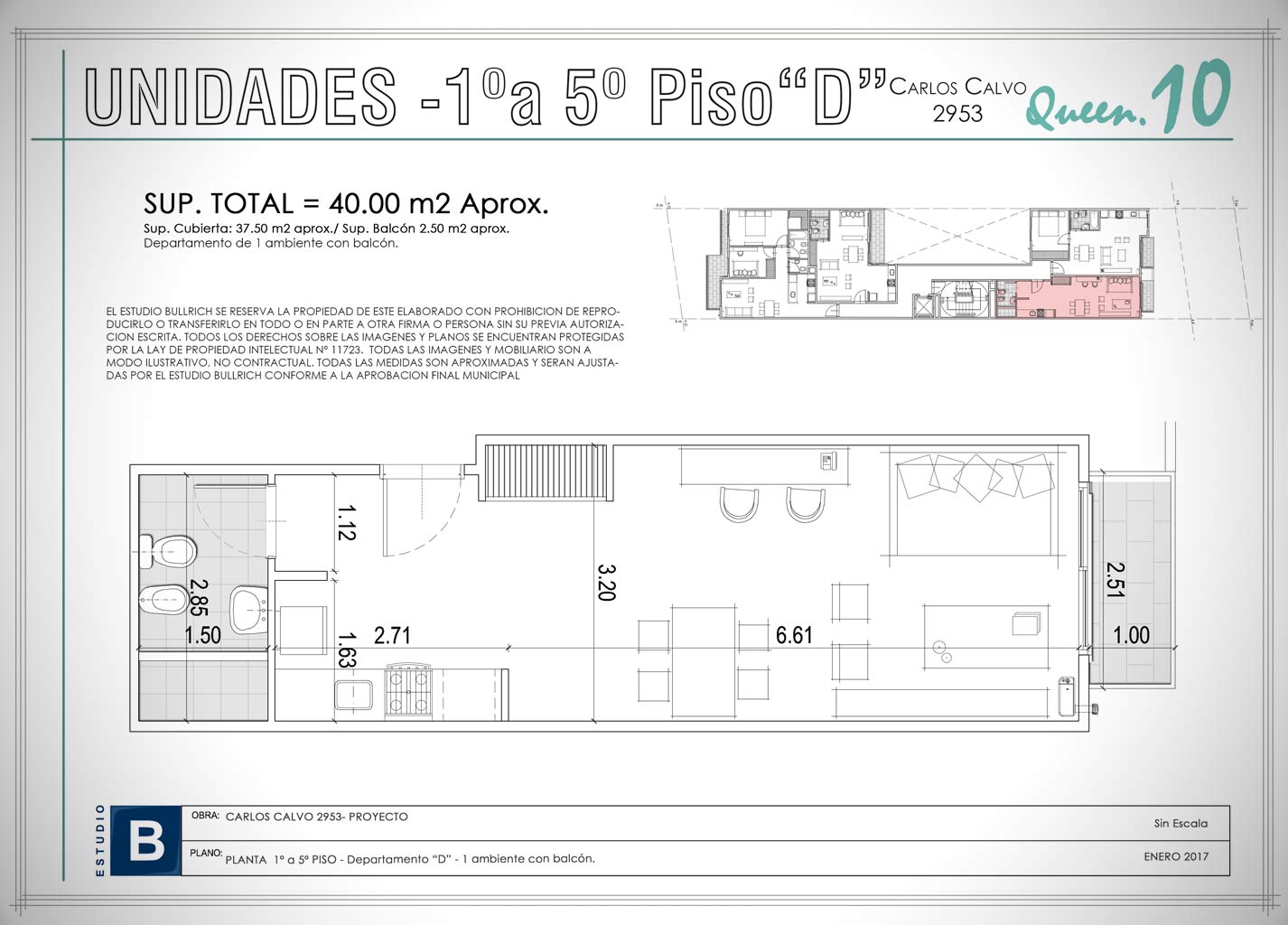 Unidades 1° a 5° Piso - Monoambiente con Balcón (Depto. "D")