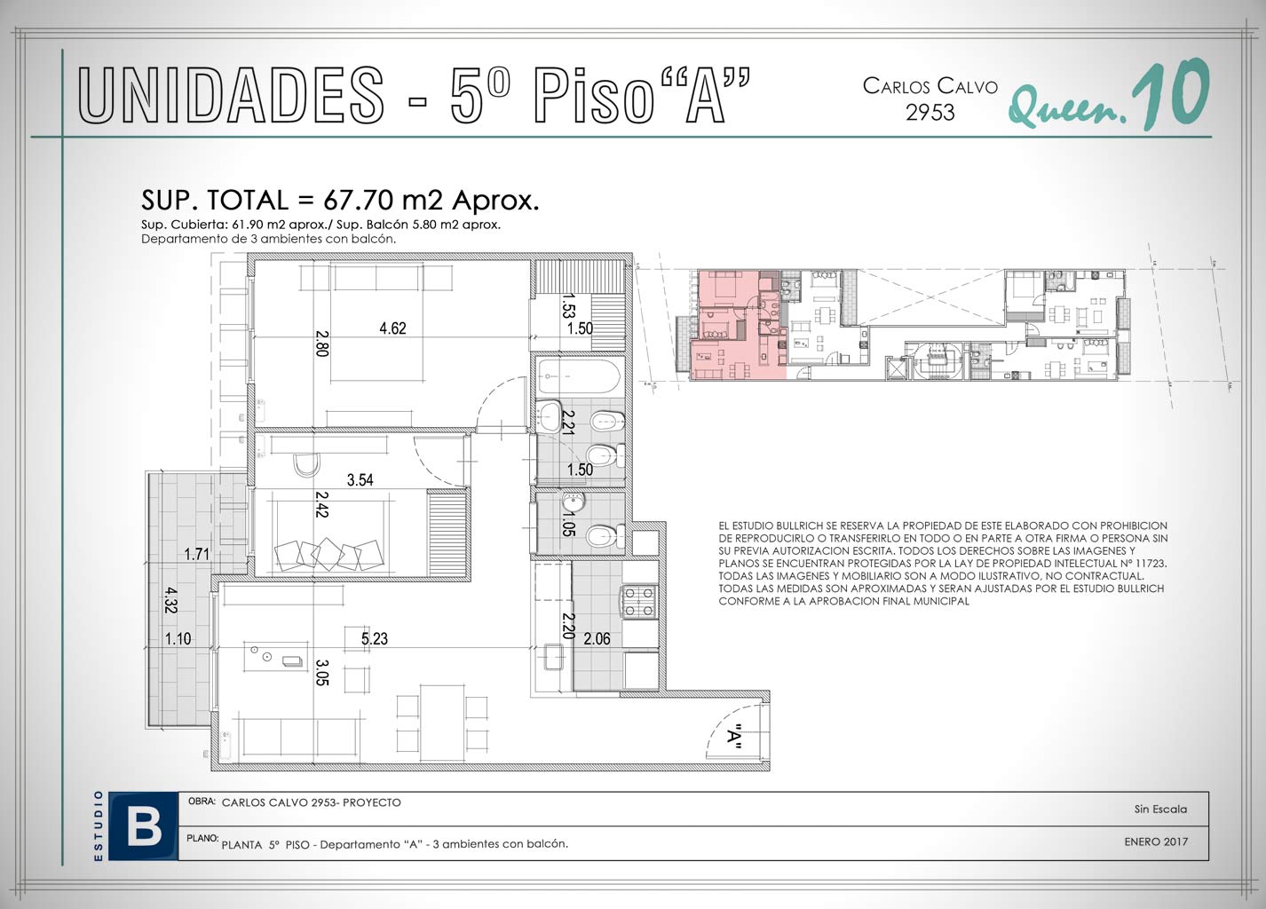 Unidades 5° Piso - 3 Ambientes con Balcón (Depto. "A")
