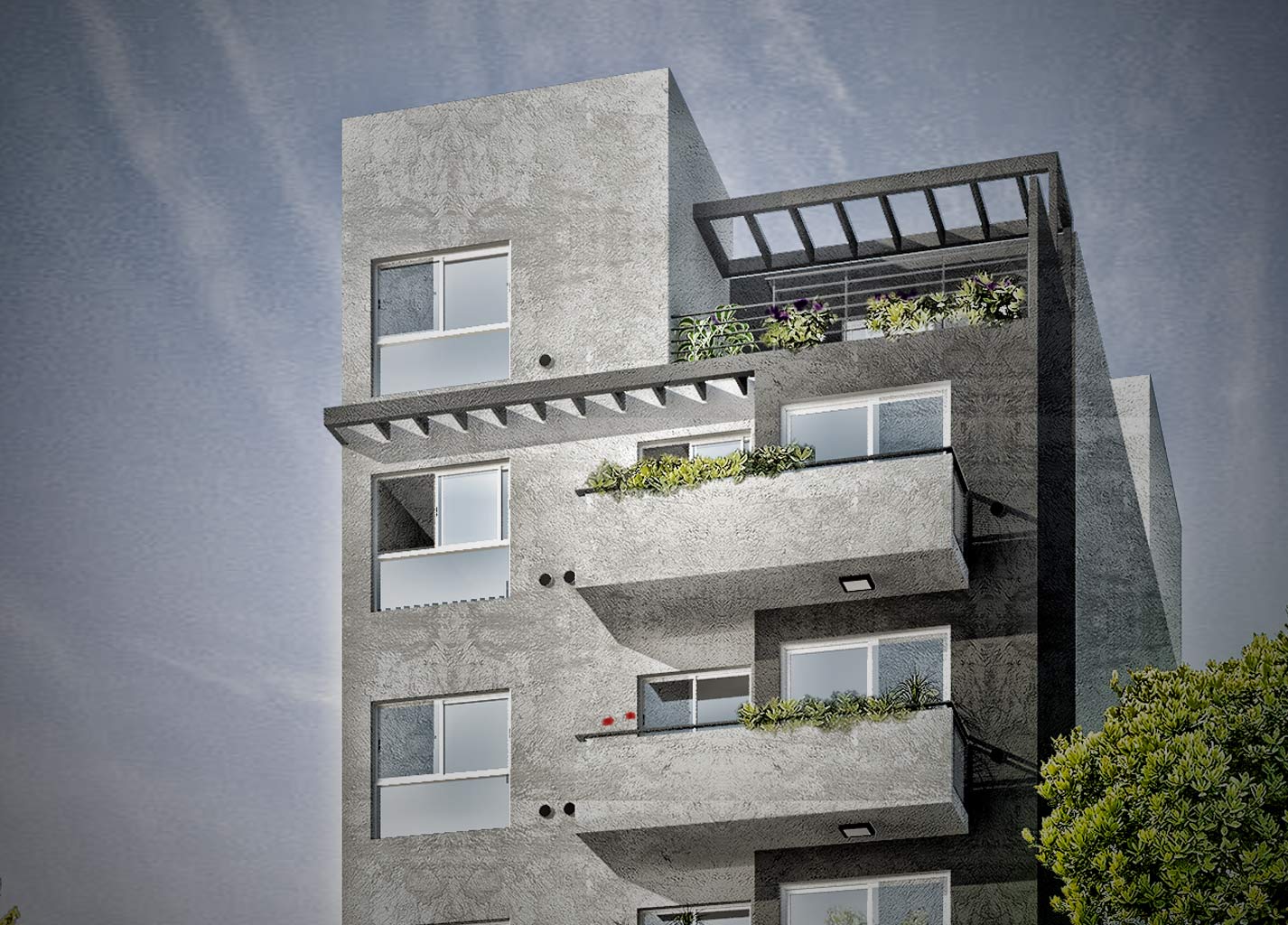 El edificio consta de 25 unidades de vivienda de 1, 2 y 3 ambientes desarrollados en PB + 6 pisos.