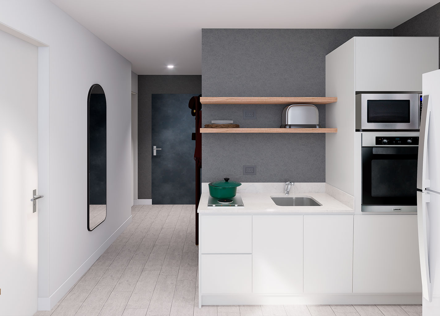 El diseño tendrá un estilo joven y moderno que permita su uso tanto para inversión, alquiler o para vivienda permanente. Tendrá detalles de hormigón, vidrio, hierro y amplias carpinterías que permiten una excelente iluminación natural en los interiores. Los colores serán sobrios, modernos y cálidos.