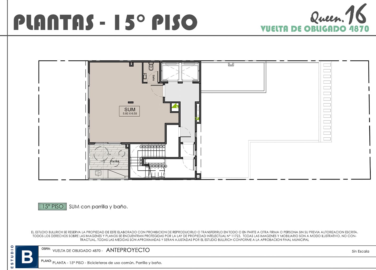 Finalmente en el piso 15º habrá un hermoso SUM con una excelente vista al río, con baño y parrilla.