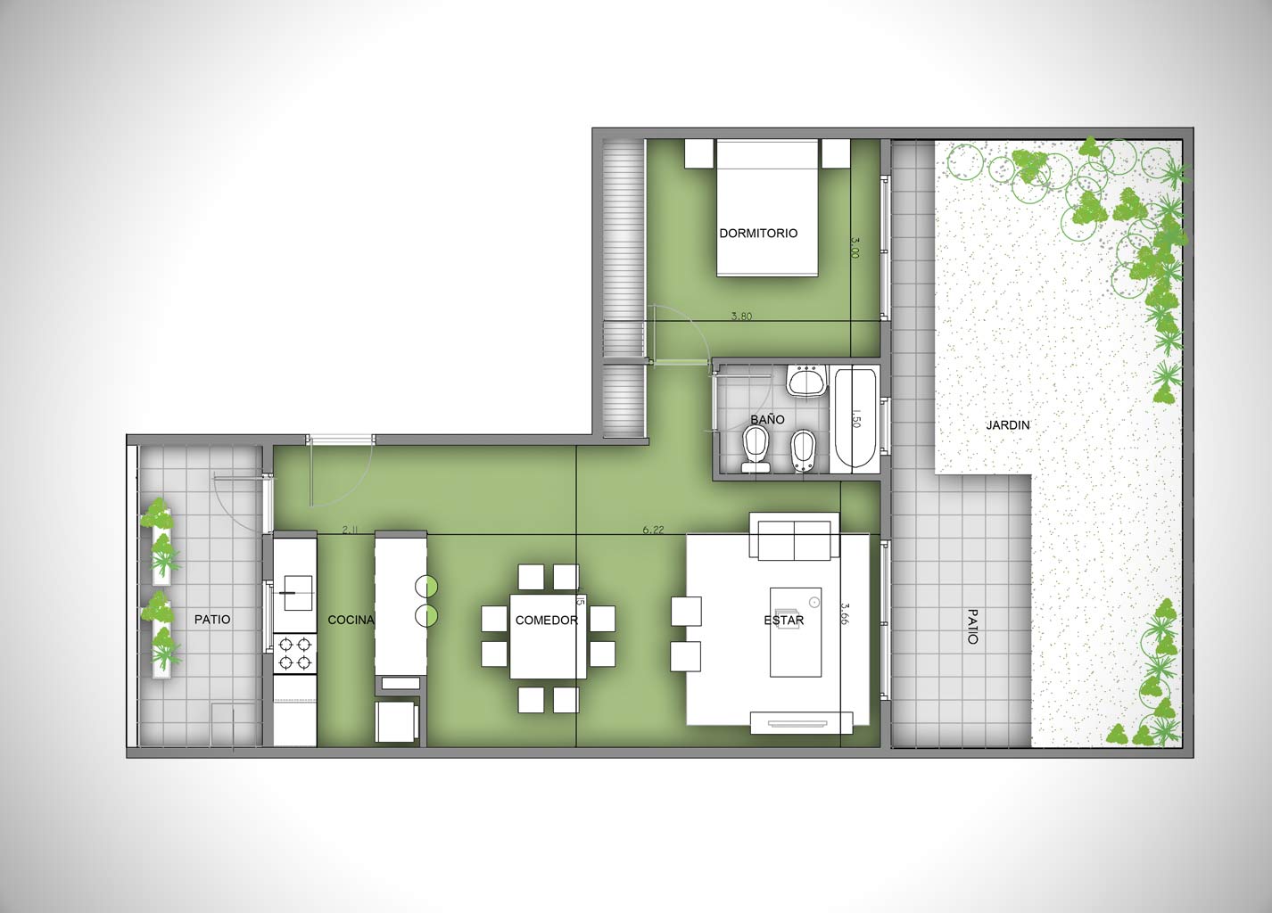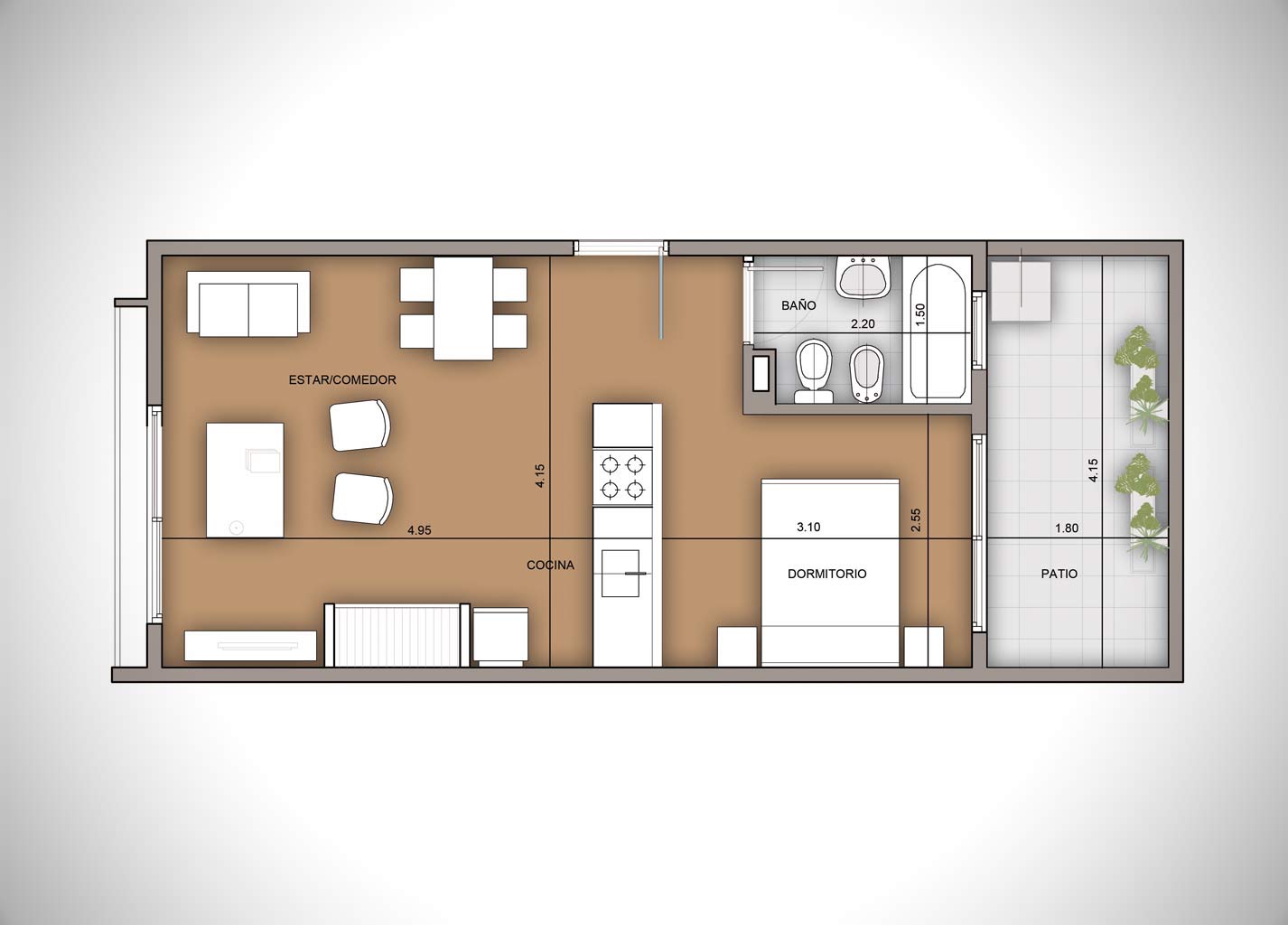 Unidades 2 Ambientes (1° a 3° Piso - Contrafrente)