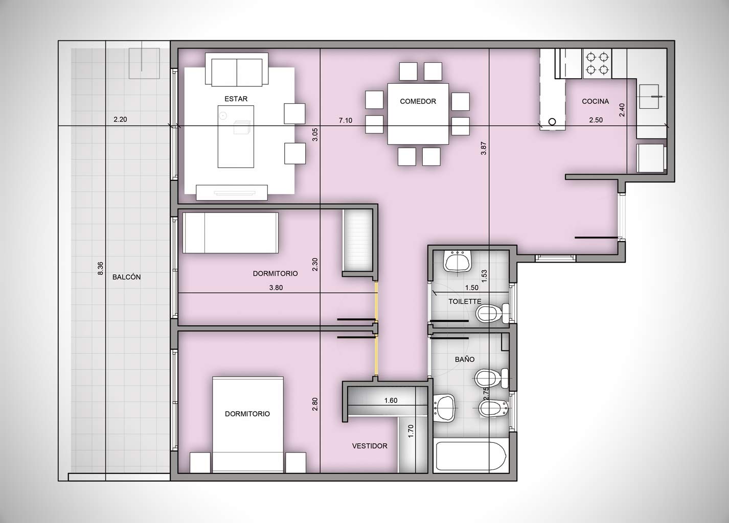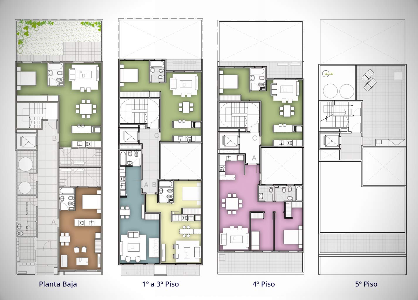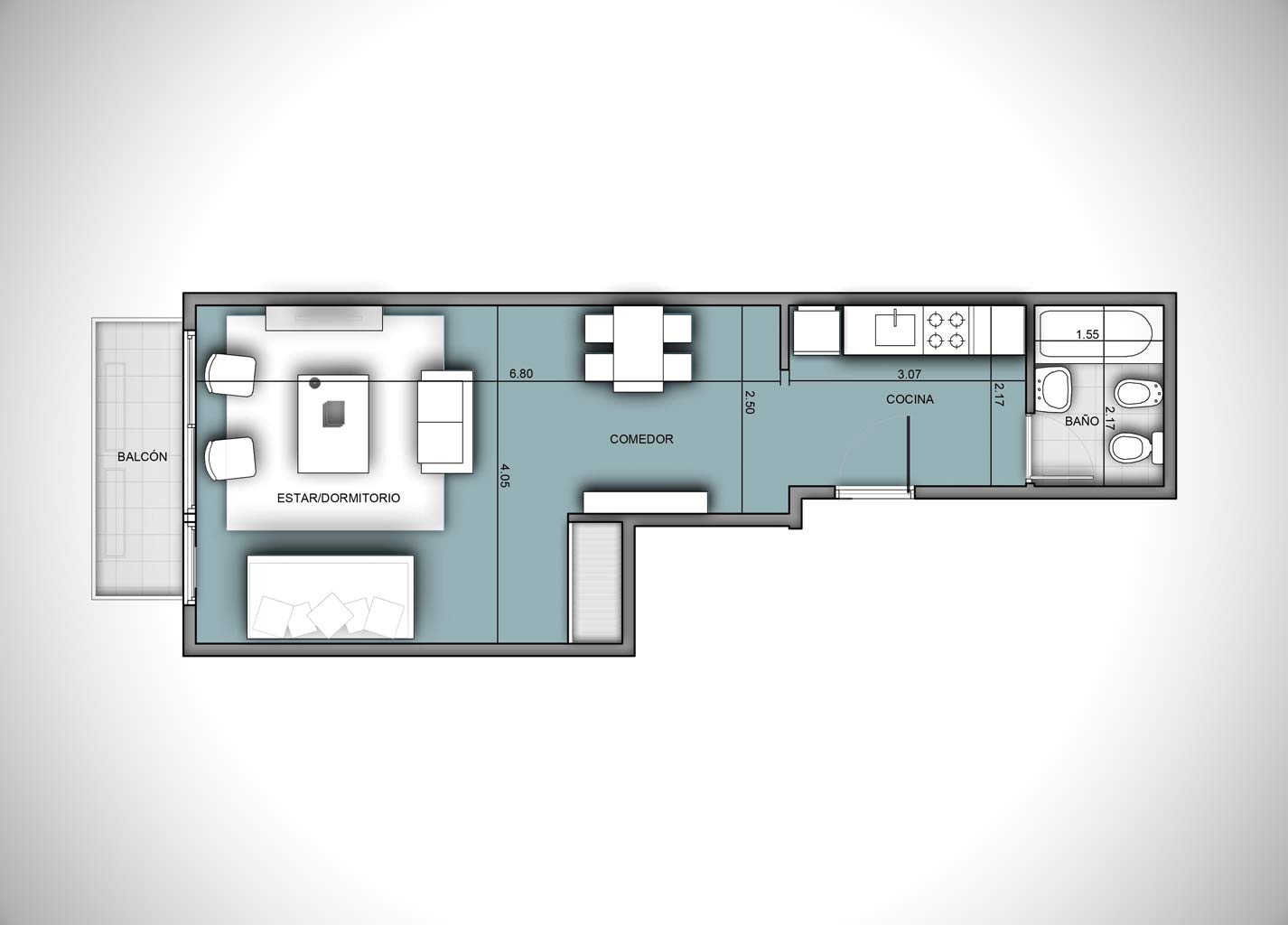Unidades 2 Ambientes (1° a 3° Piso - Frente)