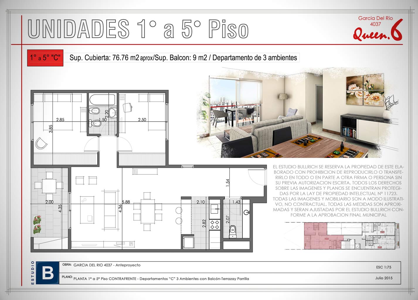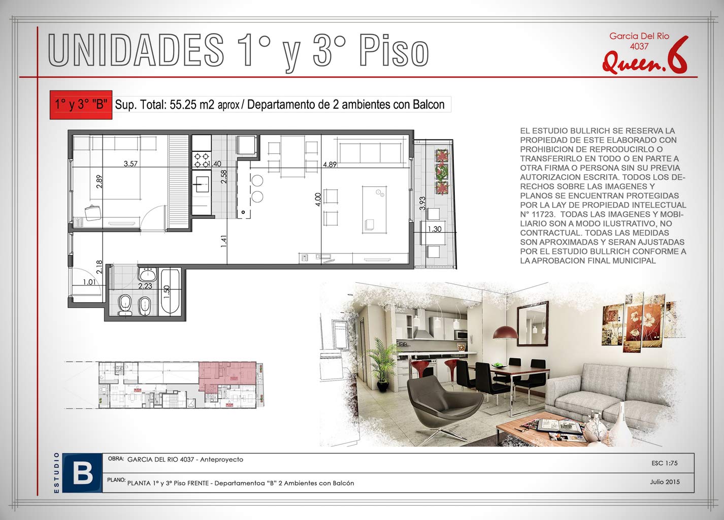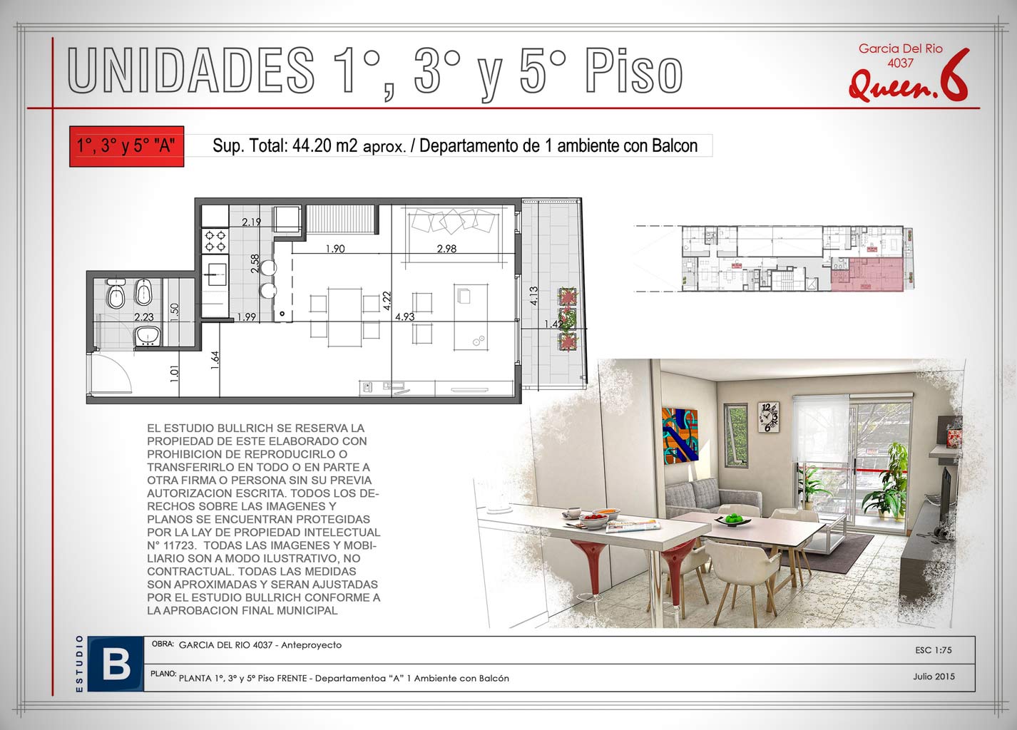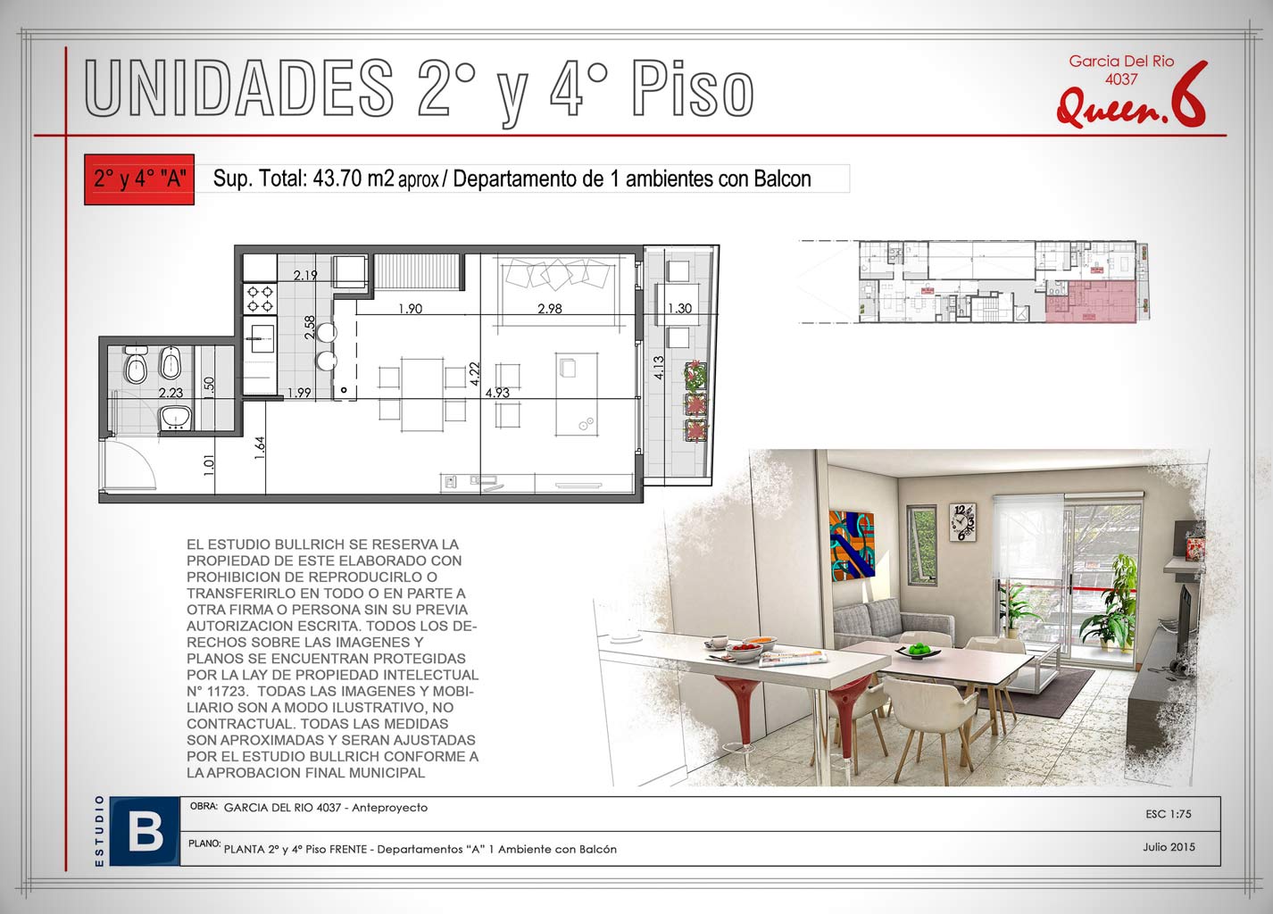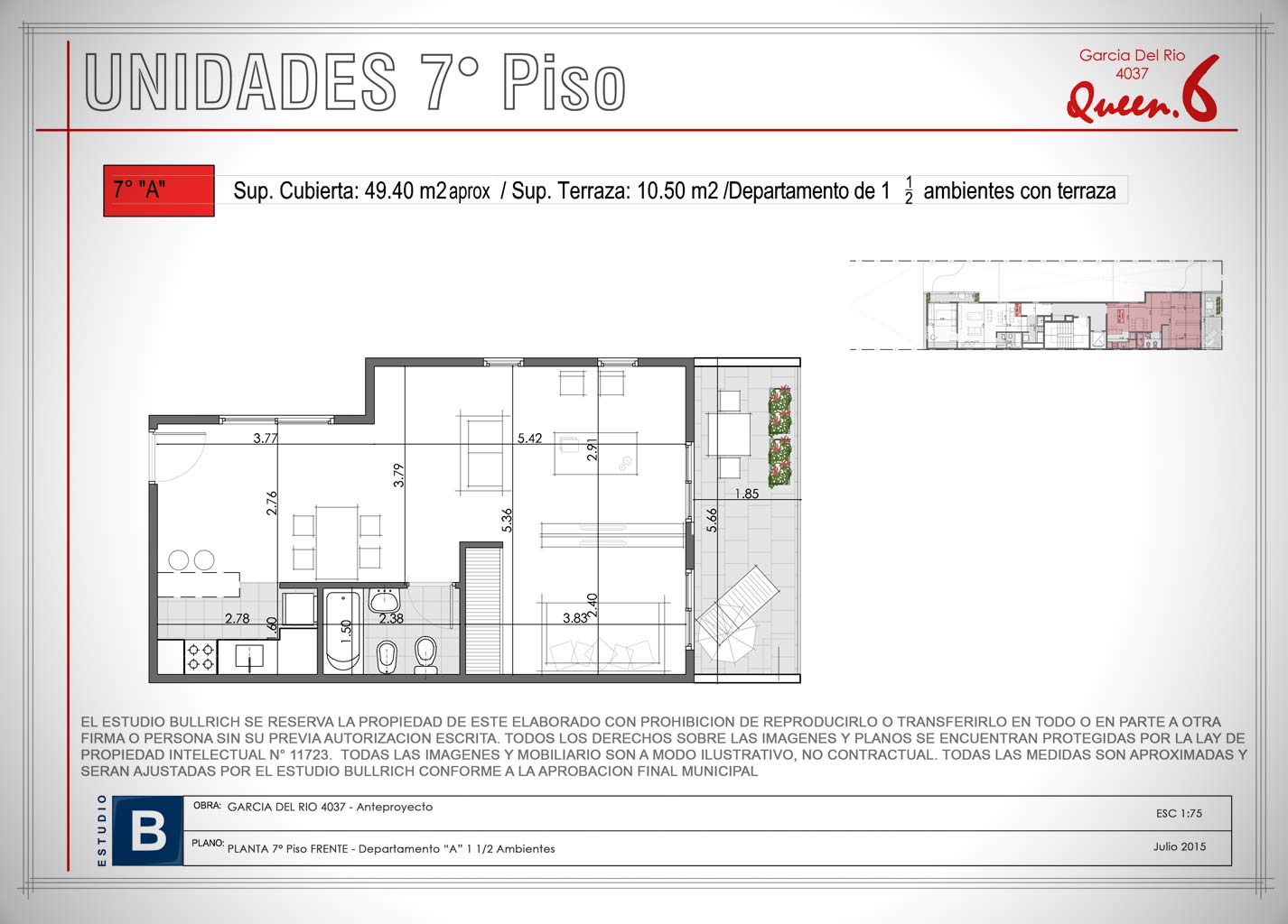 Unidades 7° Piso - 1 1/2 Ambientes (Depto. "A")