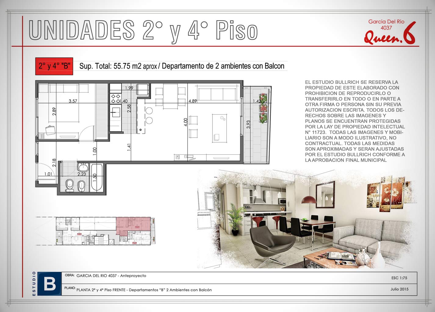 Unidades 2° y 4° Piso - 2 Ambientes con Balcón (Depto. "B")