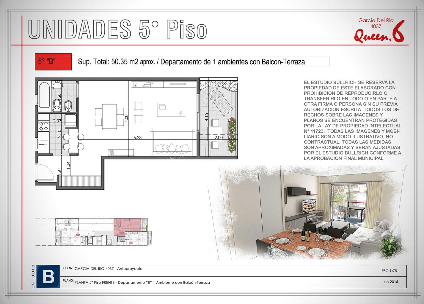 Unidades 5° Piso - Monoambiente con Balcón-Terraza (Depto. "B")