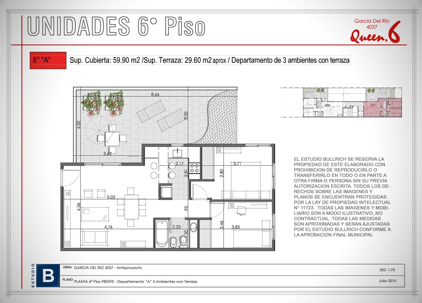 Unidades 6° Piso - 3 Ambientes con Terraza (Depto. "A")