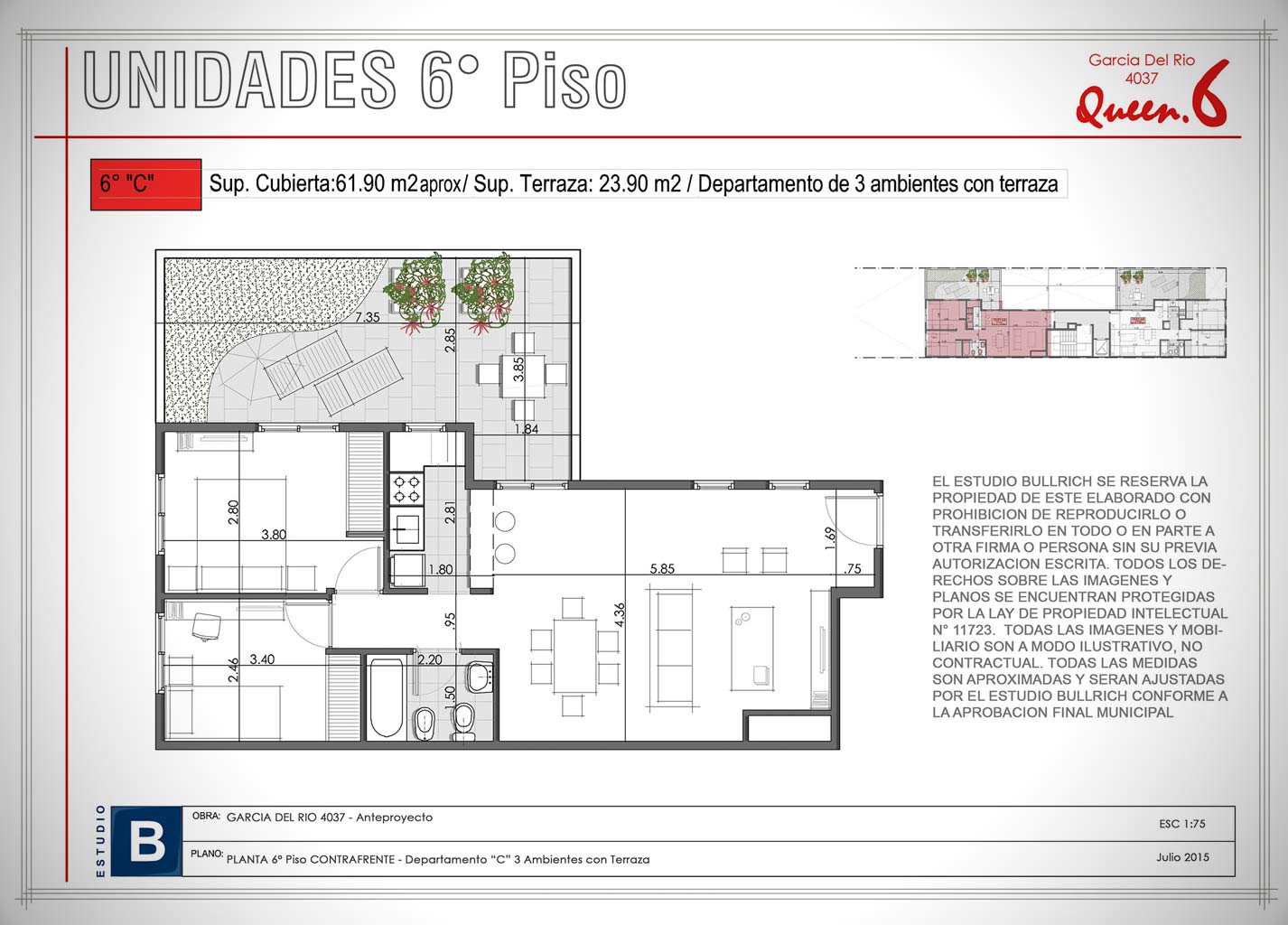 Unidades 6° Piso - 3 Ambientes con Terraza (Depto. "C")