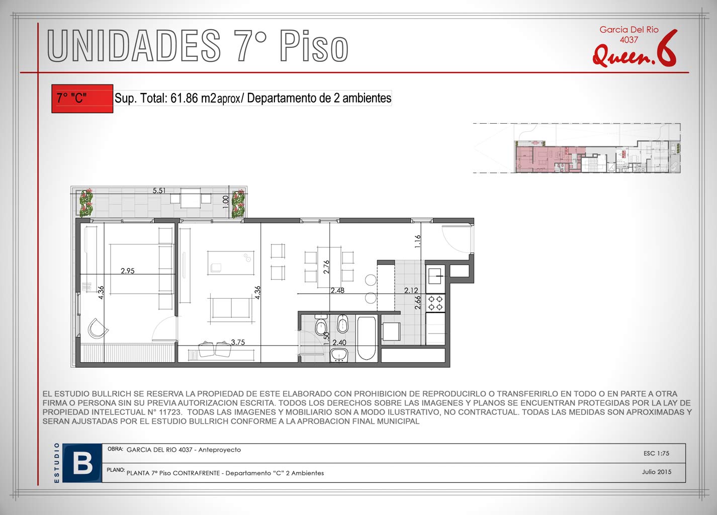 Unidades 7° Piso - 2 Ambientes (Depto. "C")