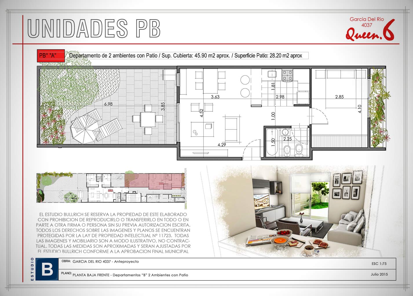 Interior 2 Ambientes (P.B. con Patio - Depto "B")
