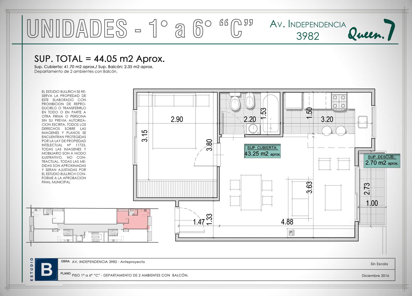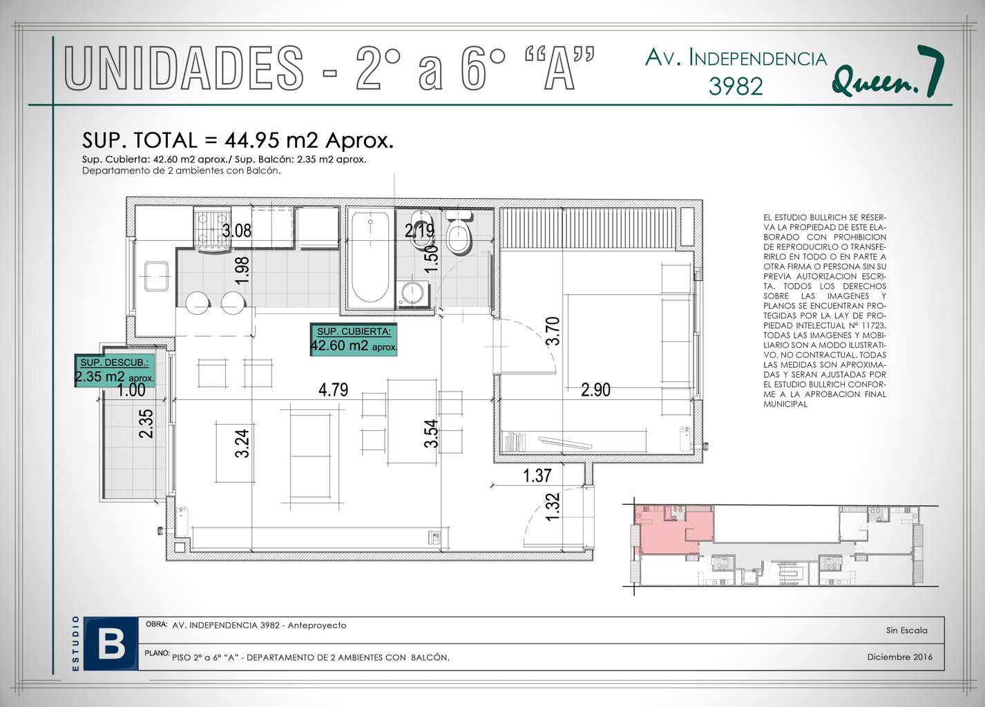 Unidades 2° y 6° Piso - 2 Ambientes con Balcón (Depto. "A")