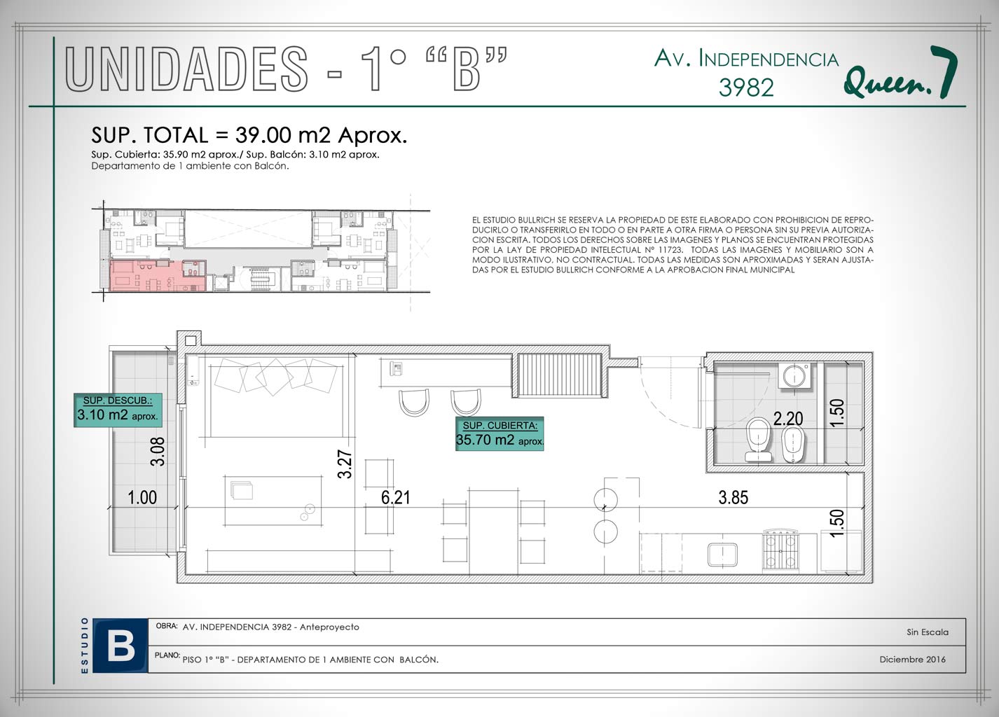 Unidades 1° Piso - Monoambiente con Balcón (Depto. "B")