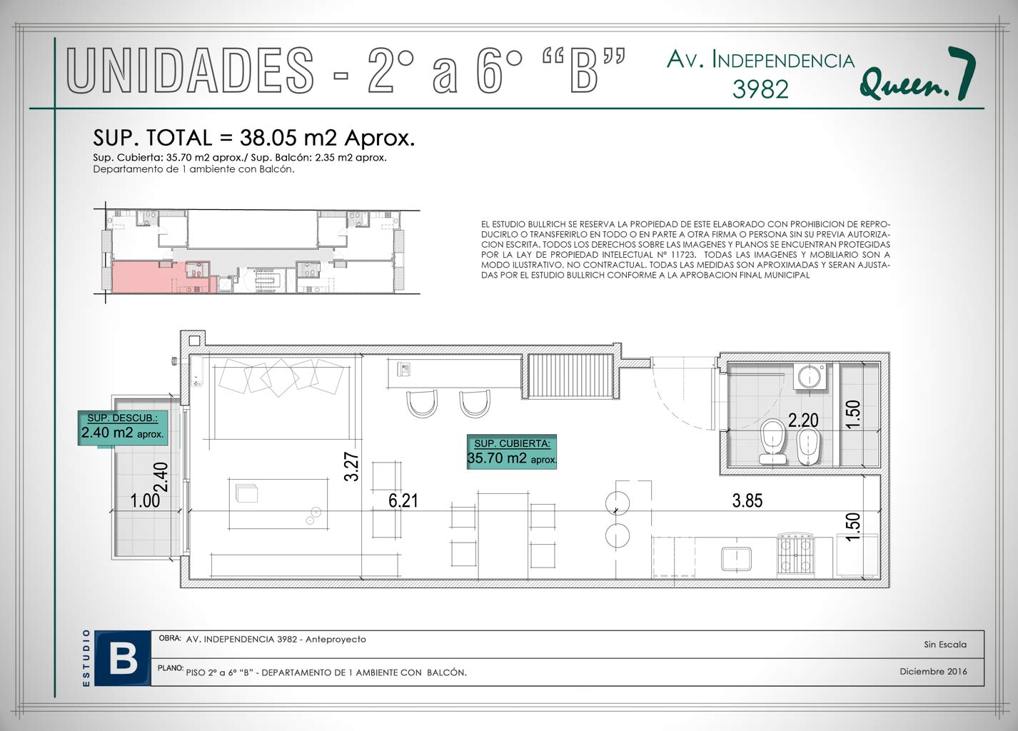 Unidades 2° a 6° Piso - Monoambiente con Balcón (Depto. "B")