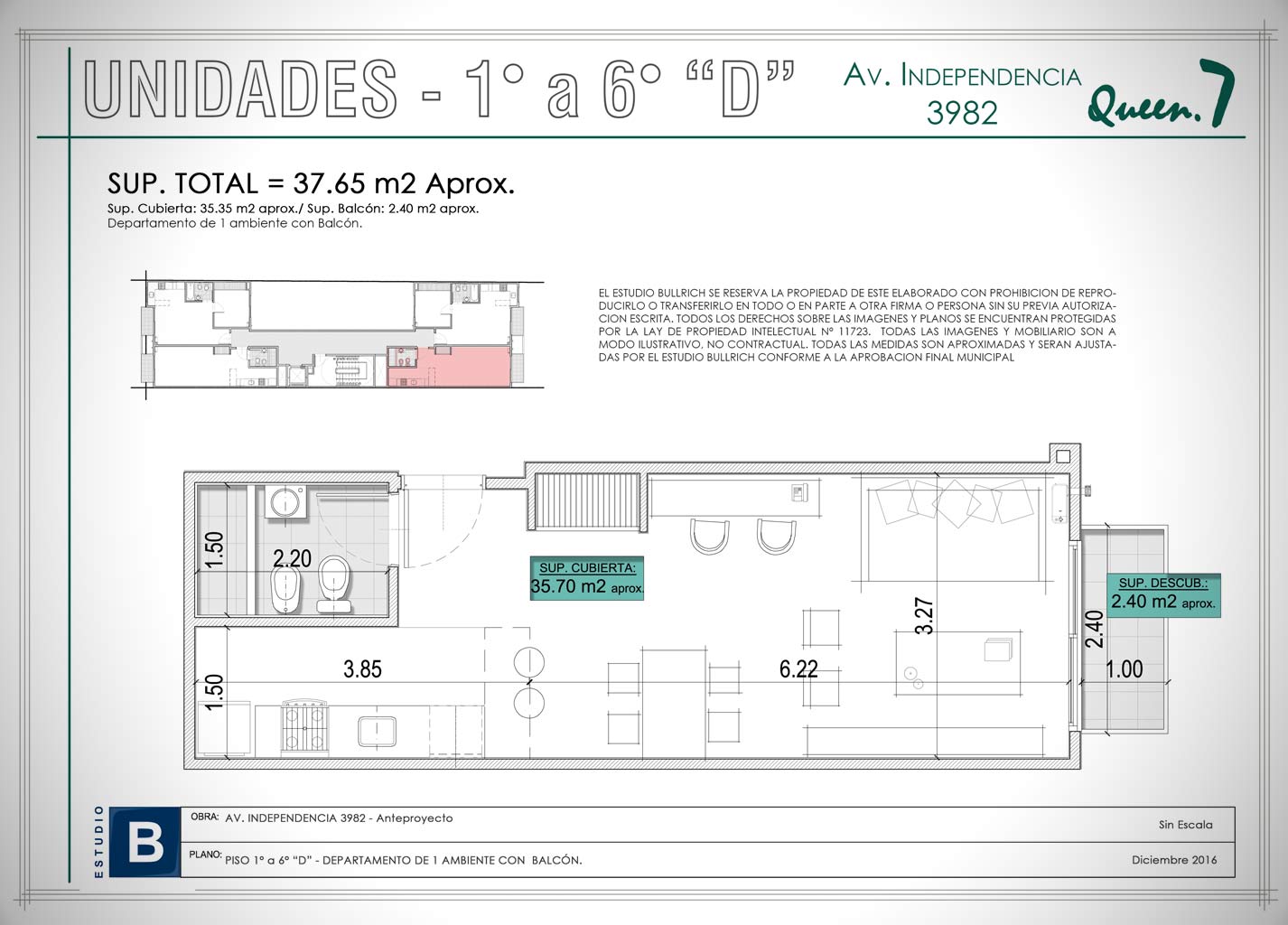 Unidades 1° y 6° Piso - Monoambiente con Balcón (Depto. "D")