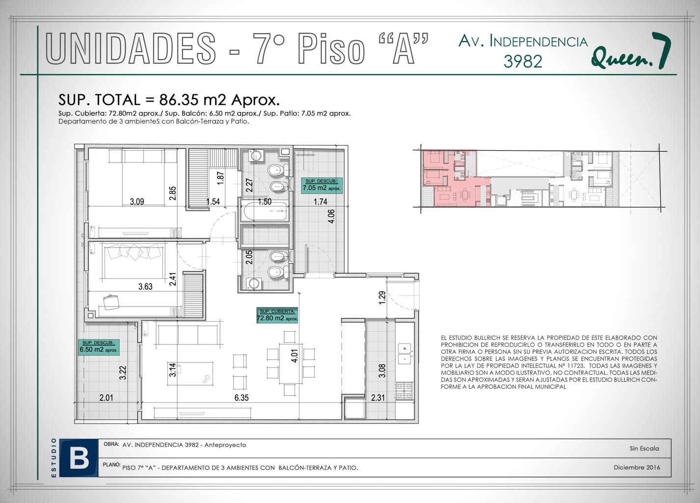 Unidades 7° Piso - 3 Ambientes con Balcón-Terraza y Patio (Depto. "A")