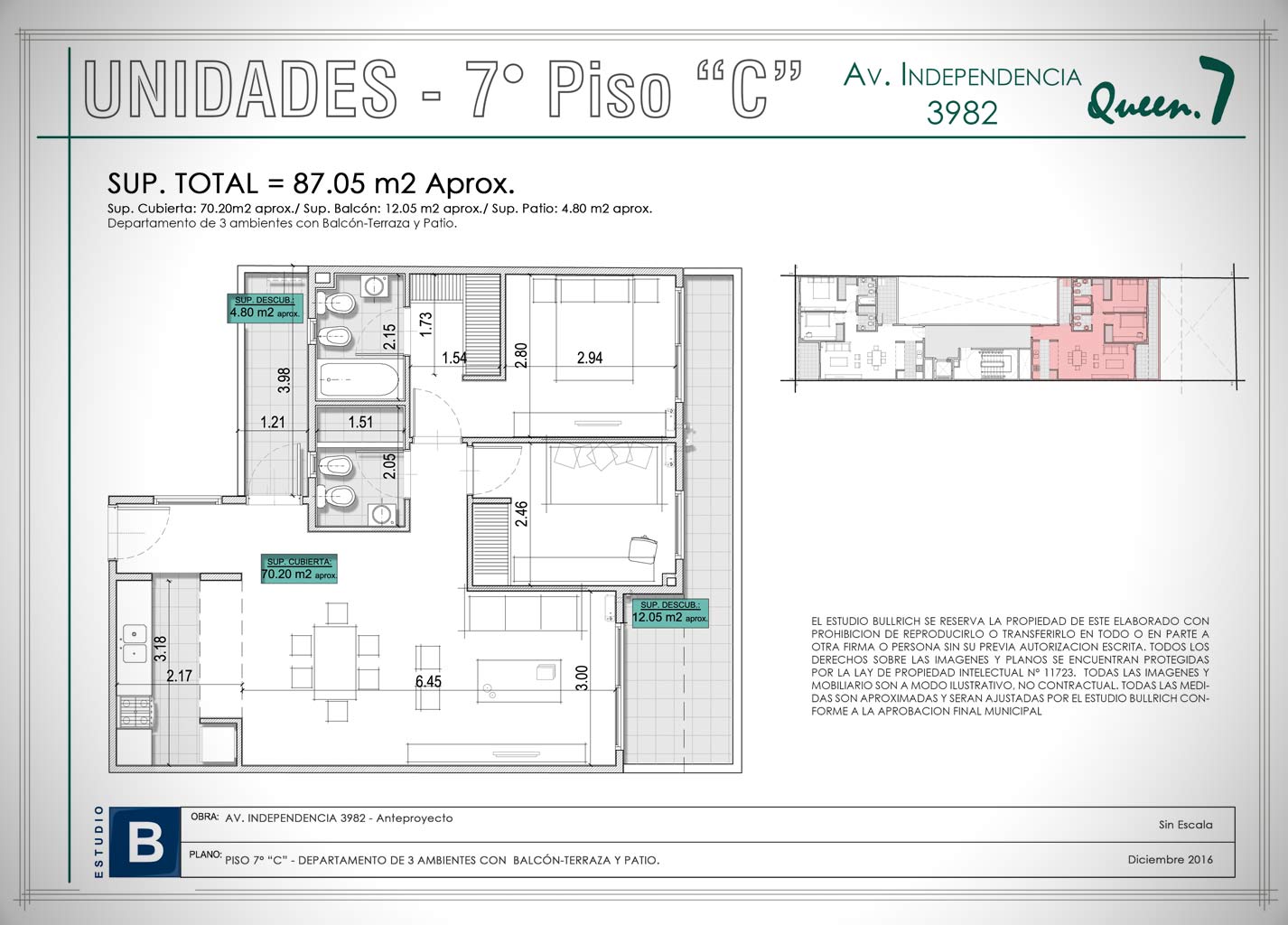 Unidades 7° Piso - 3 Ambientes con Balcón-Terraza y Patio (Depto. "C")