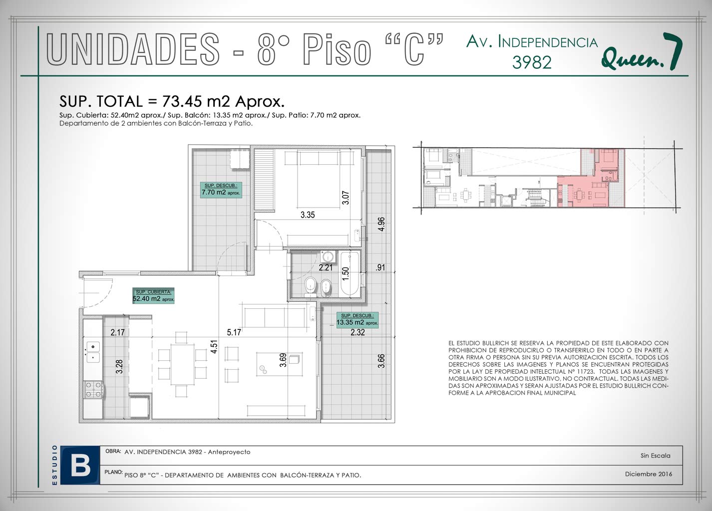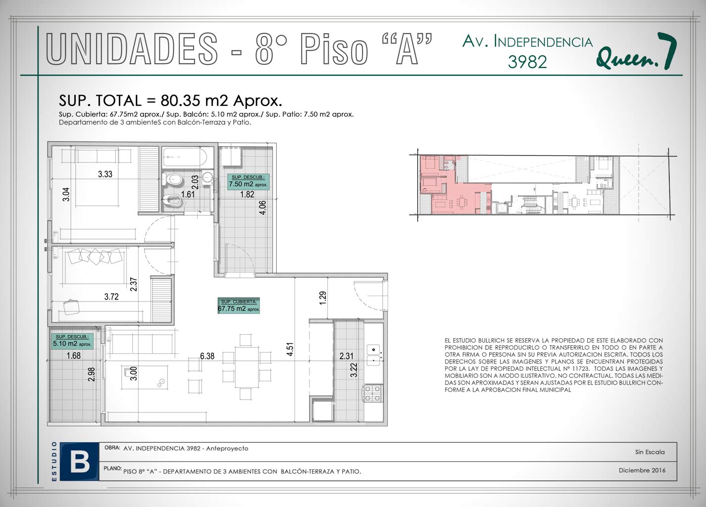 Unidades 8° Piso - 3 Ambientes con Balcón-Terraza y Patio (Depto. "A")