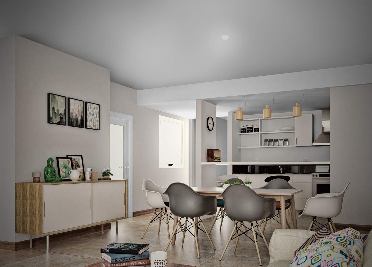 Interior - 3 Ambientes (Vista hacia la Cocina)