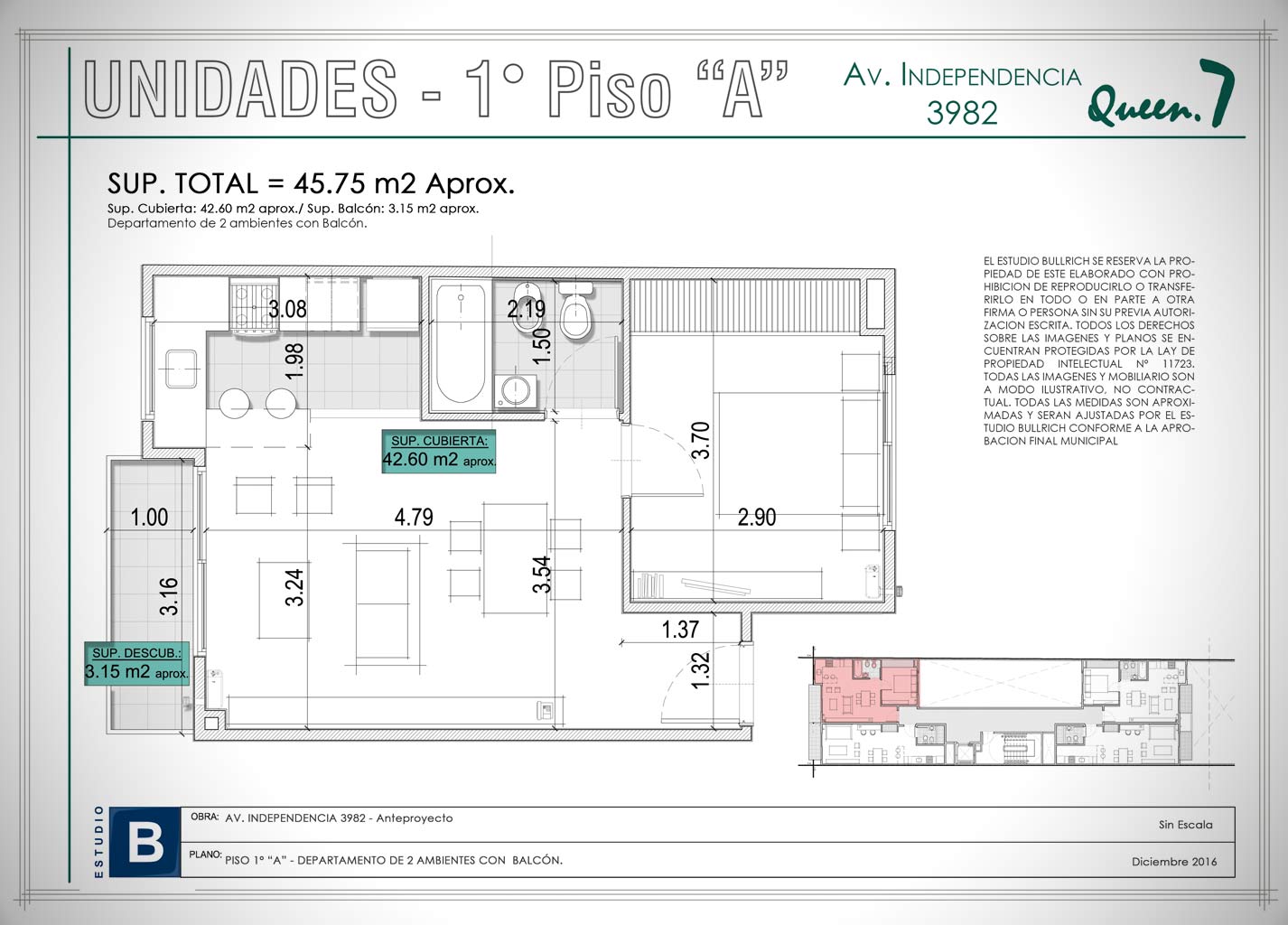 Unidades 1° Piso - 2 Ambientes con Balcón (Depto. "A")